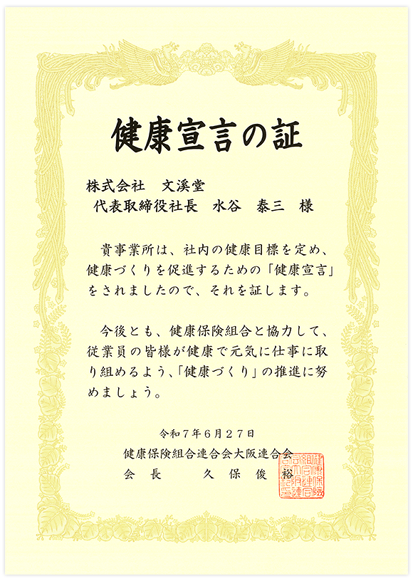 『健康宣言の証』を受領しました