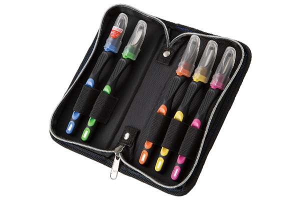 彫刻刀をバッグの2面に分けて収納。作業時も場所を取りません。