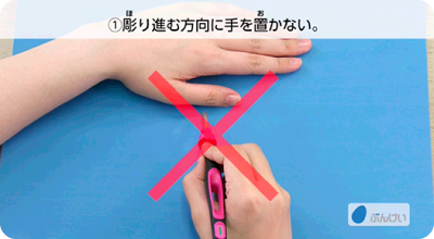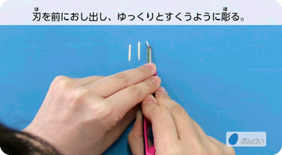 ※本動画は、プロの作品作りの観点から、あえて安全ガードを使用せずに作成しています。 児童が彫刻刀を使用する際は、先生の指導のもと、刃の取り扱いに十分注意してください。